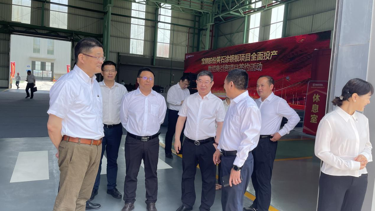 董事長劉國民和寶鋼股份黃石涂鍍板有限公司總經理助理兼制造部部長劉浩洲(左三)